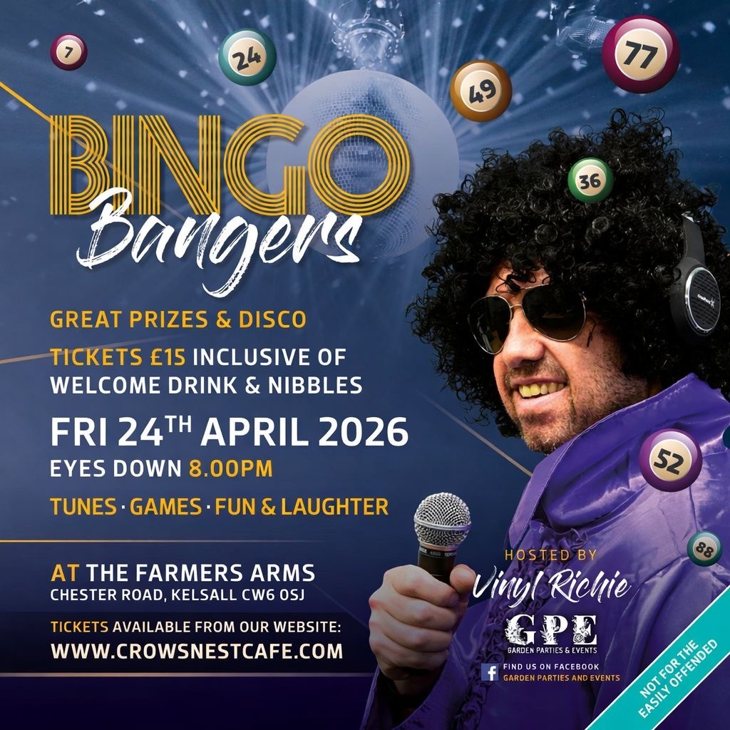Hosted by the extra-ordinary “Vinyl Richie” you’ll be up dancing and singing along to the banging tunes, playing mad games whilst also playing Bingo with some mad prizes!